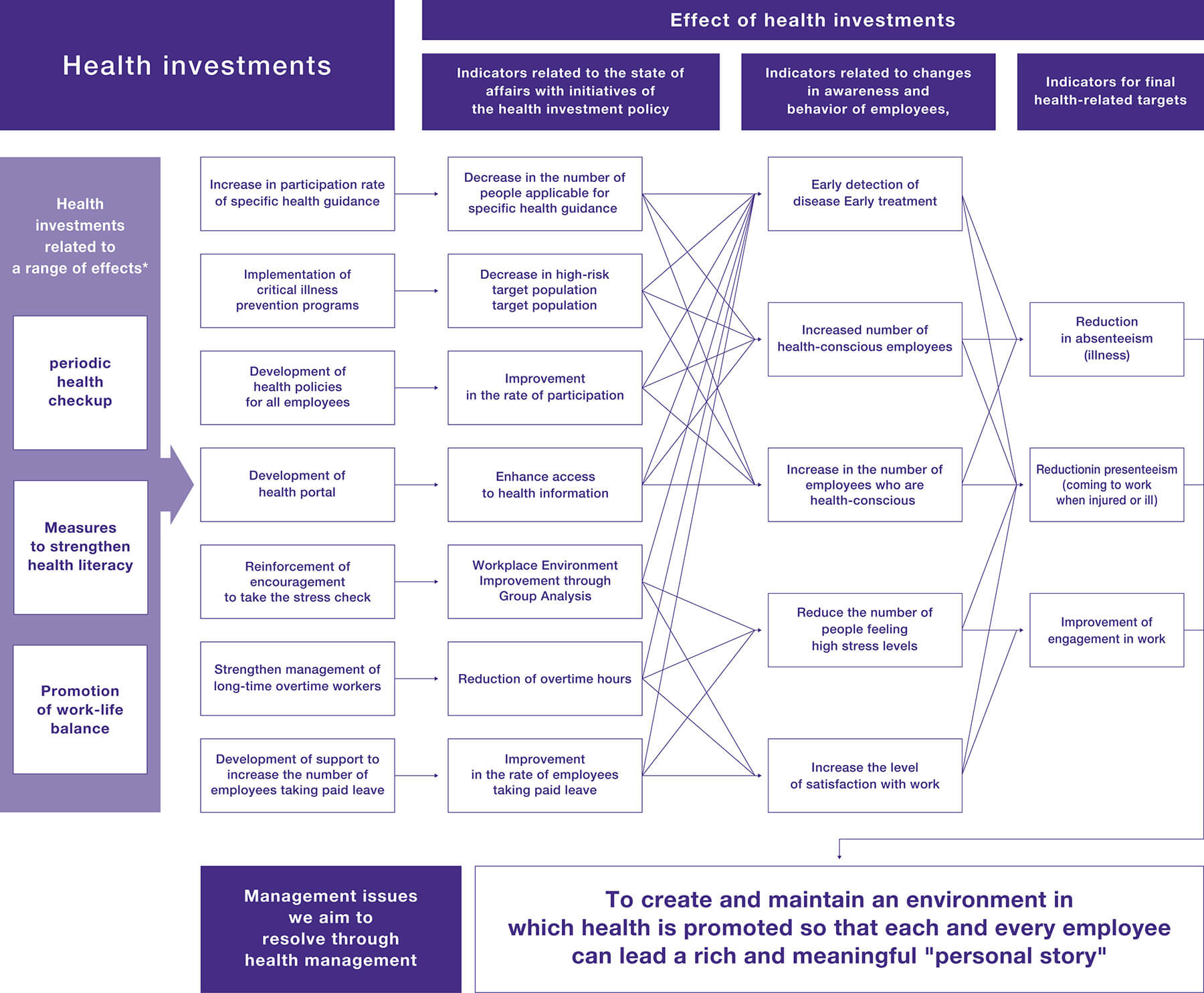 We have created a strategic map with a focus on our long-term management vision, and are taking various health measures with the goal of improving the performance of our employees.