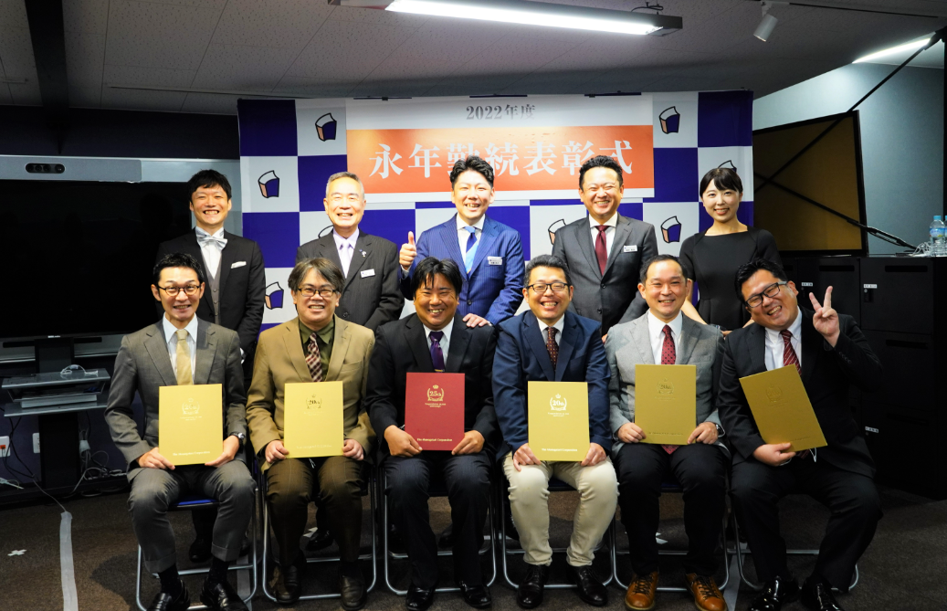 株式会社物語コーポレーション(本社:愛知県豊橋市、代表取締役社長:加藤 央之)は、2022年7月19日、全国で働く社員を対象とした「2022年度 永遠勤続表彰式(以下、表彰式)をオンラインと対面のハイブリッド型で開催しました。