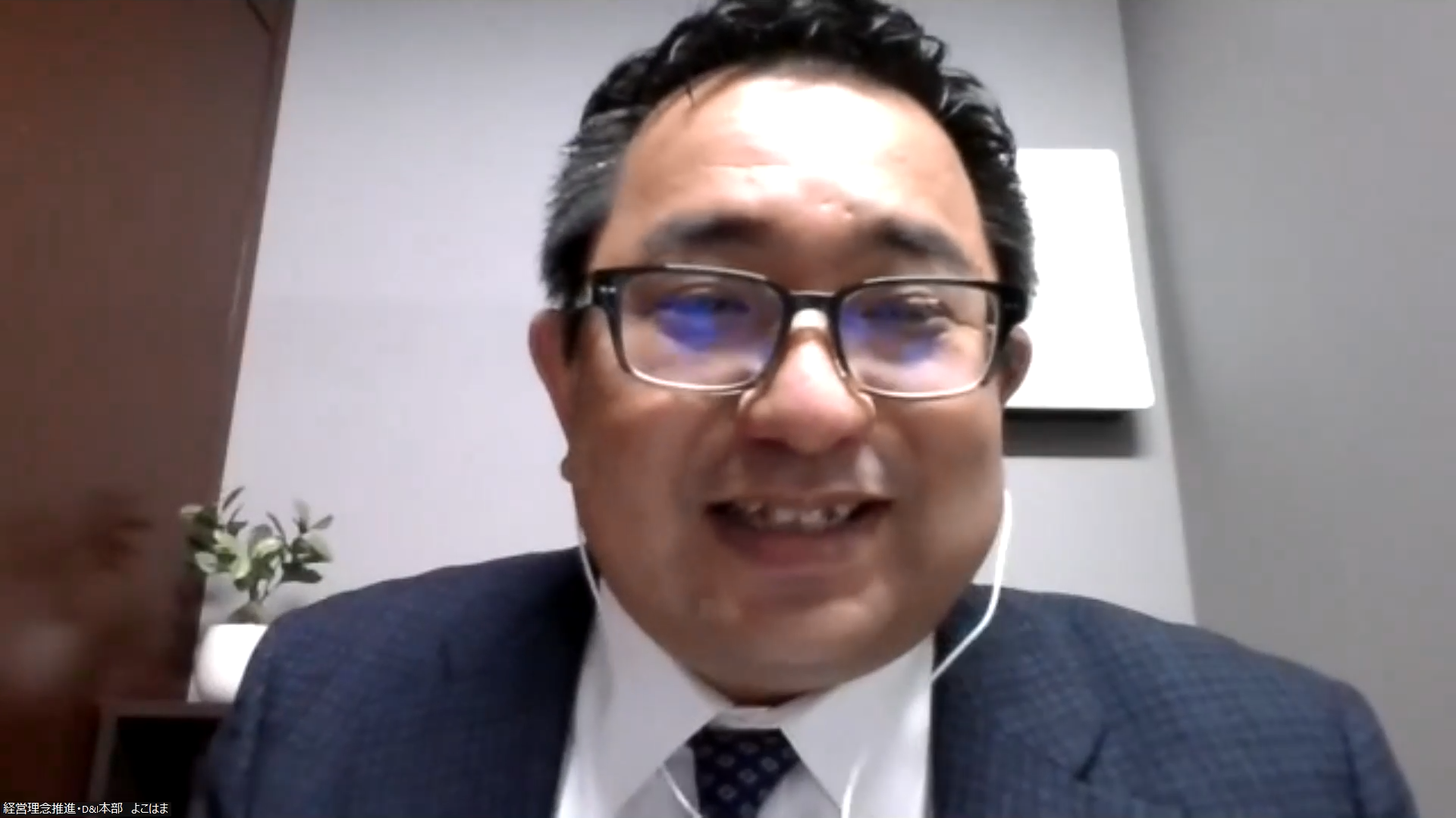 ▲執行役員 経営理念推進・ダイバーシティ&インクルージョン本部本部長 横浜が、チャレンジドパートナーに「一人ひとりの力強い決意表明への感謝」に溢れたあいさつをする様子