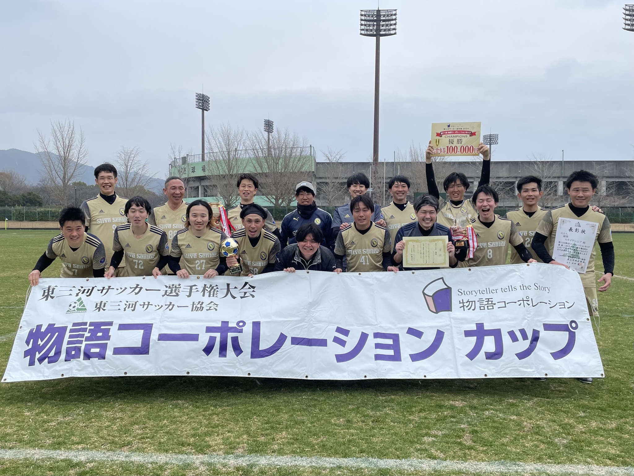 株式会社物語コーポレーション(本社:愛知県豊橋市、代表取締役社⻑:加藤 央之)は、公益財団法人愛知県サッカー協会 東三河地区協会が主催する「東三河サッカー選手権 2024」において、2024年2月18日(日)から3月17日(日)の期間、「第11回物語コーポレーションカップ」を開催いたしました。