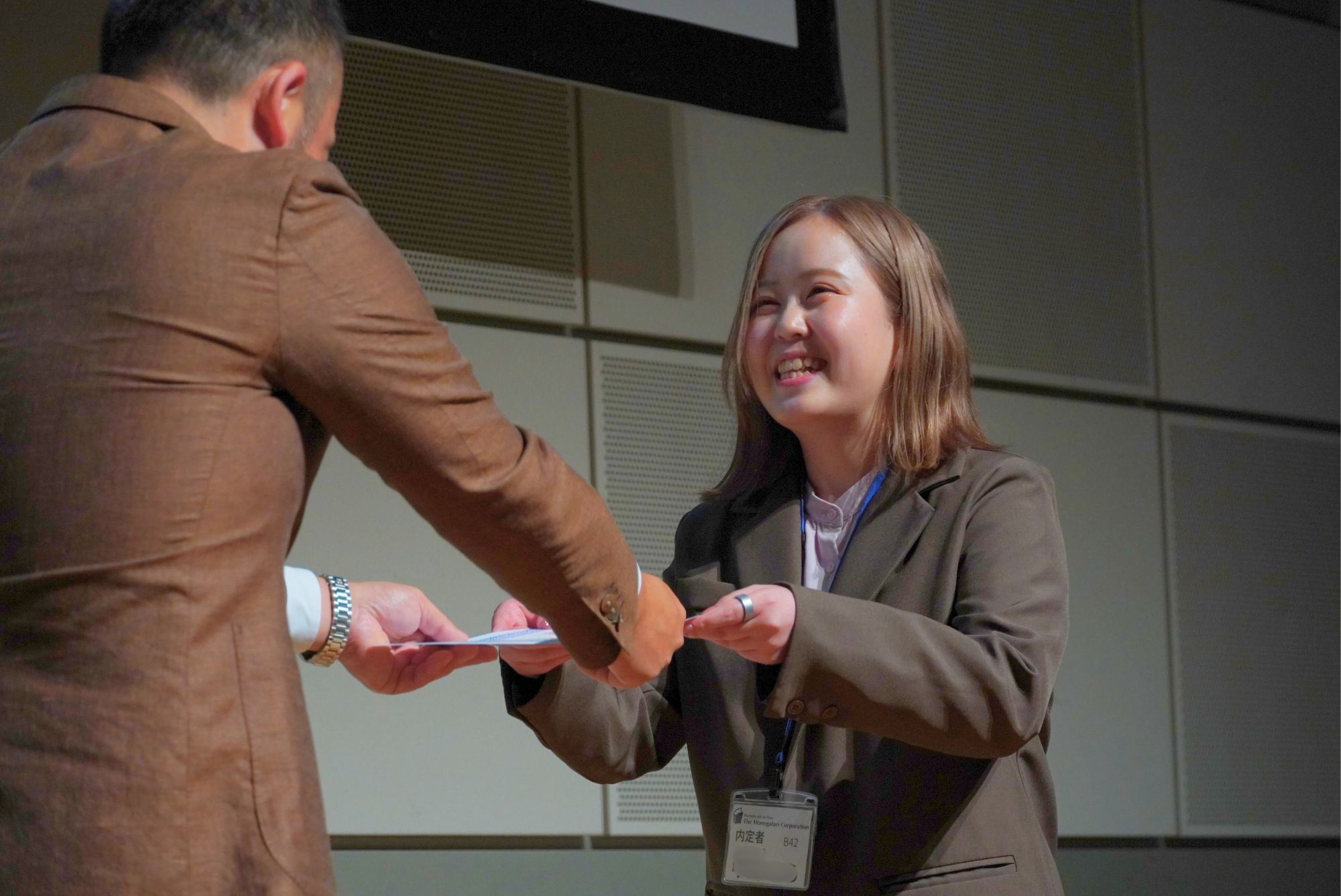 「内定証書授与式」は対面で開催され、内定者と列席者を含め計94名が参加しました。なお、2025年1月には、入社に向けた準備を行う「キックオフミーティング」の開催を予定しております。当社の経営理念「Smile & Sexy」が表す「自分らしく生きること」を目指す理念型人財の採用に向けて、引き続き選考活動と内定者へのフォローアップを行ってまいります。